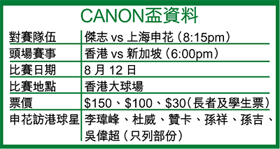 另外,8月12日假大球場進行的表演賽,上海申花已提交訪港球員名單,其中杜威、李瑋峰、郜林等國腳均在訪港球員之列,當然,香港唯一外流球員吳偉超、前德國國腳贊卡、肖戰波、謝暉等亦會隨隊。伍健補充說:「由於中國國家隊在本月尾宣布集訓名單,幾名現役國腳能否抵港仍屬未知數。」