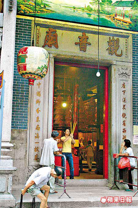 其後見傑仔在廟祝指引下,先拿着三支大香,站在門前拜當天,他口中一直念念有詞,顯得十分誠心,其後拿着「觀音衣」在門前重複動作,上好香後,傑仔在廟內逗留了15分鐘便離開。