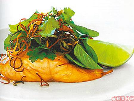 4-6安士燒三文魚、2杯綠葉或深色葉沙律,配合橄欖油及數滴檸檬汁、1個奇異果