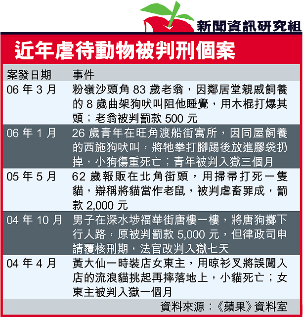 愛護動物協會公共及傳訊經理顏綺苓認為判刑太輕。她指被告雖然無使用暴力,但因為他的疏忽照顧,令狗隻死亡,「疏忽照顧與暴力對待動物,刑罰應該同等。」今次判決給公眾一個很壞訊息,就是疏忽照顧動物的刑罰較輕。愛護動物協會於04至05年度,接獲480宗虐待動物投訴個案,發出460個勸喻,並檢控2宗。