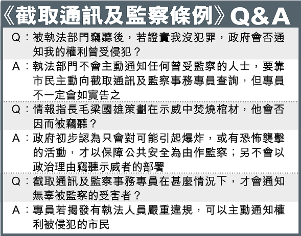 保安局局長李少光強調,草案已就執法與保障人權及私隱作出平衡,當局有嚴格規管執法部門不會濫權,並保證當局不會藉以作為政治監控。