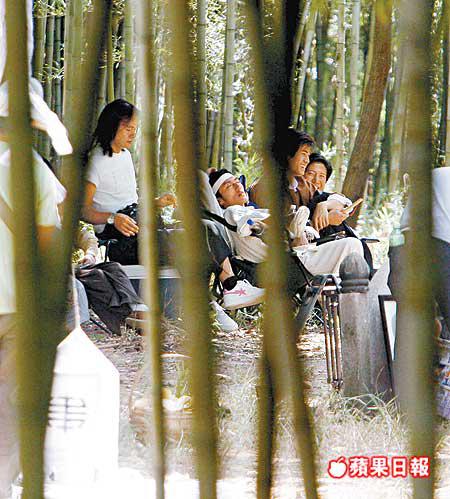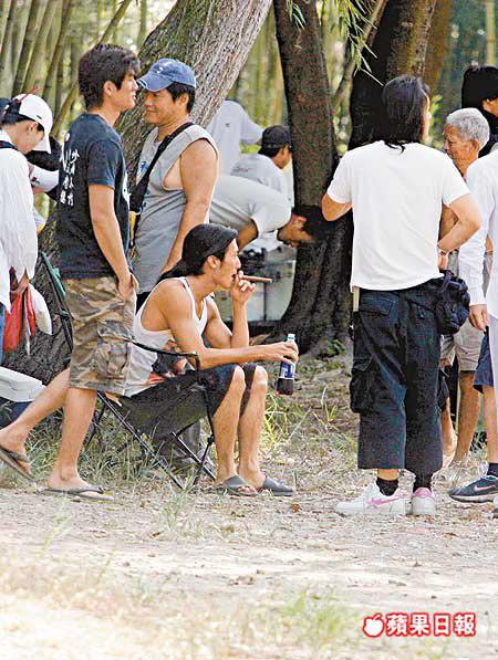 現為百事可樂代言人的霆鋒,昨早特別穿上印有美女飲百事的T恤,隨隊到陽下陳村外景場地開工,當他坐在樹陰下整理古裝頭時,不忘故技重施,在傳媒鏡頭前將汽水左搖右晃,而患有哮喘的他更食雪茄,認真騎呢。其後霆鋒換上孝服拍攝喪父場面,雖然勉強抖擻精神,又與工作人員玩詠春過兩招,但拍了一會已忍不住「放蚊」,在空檔時更「攤屍」大覺瞓。霆鋒一直拍至晚上7時才返回酒店,記者問他是否不夠精神時,他只笑而不語。
