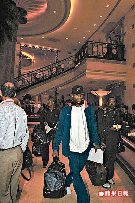 由14位NBA球星組成的夢幻7隊,昨晚約於9時15分由拉斯維加斯飛抵廣州新白雲機場,由於球員們由機場的貴賓通道離開,直接登上巴士前往下榻的酒店,令到在場守候多時、希望一睹偶像風采的大批球迷和傳媒只能離遠看到巴士上夢7眾星的身影。