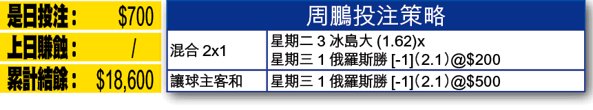如果你係教練,踢完世界盃不久又要再比賽,你會點做?強隊教練會講:「放心啦,帶住班細就ok啦!」二、三線國家隊教練會講:「世界盃已過,我哋放眼歐國盃,努力!」如果以上情況真係出現,我會預測今明兩日嘅賽果分別如下。