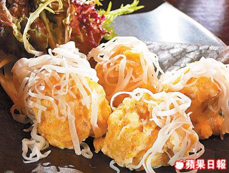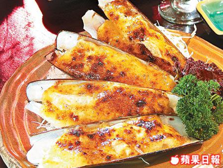 大廚用清酒、韓式泡菜醬、味醂、甜酒、蒜茸調製沙律醬,放在炒過的蟶子上再烘至金黃色,超香口。