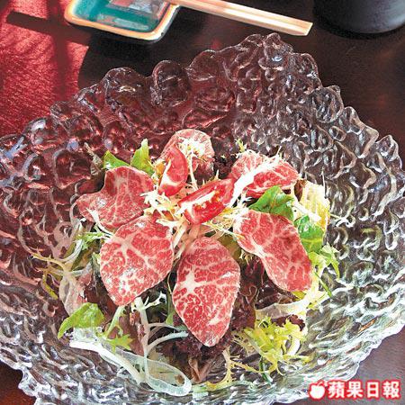 澳洲雪花和牛薄片,冰冷度適中,軟滑香甜,蘸自製醋汁和風沙律油,少了油膩飽滯感,是道不俗的開胃菜。