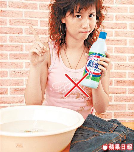不得使用漂白劑,講到明係漂白,有顏色嘅牛仔褲就梗係唔用得喇,只要掂到一小滴,你條褲就分分鐘Certified!柔順劑亦可免則免,牛仔褲都係「硬朗」啲好睇!