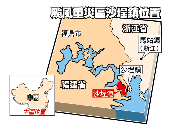 颱風「桑美」10日直吹福建福鼎,對當地造成前所未有的破壞。昨日在福鼎沙埕港碼頭,數千名死難者家屬仍守候着這一星期來寸步未移的地方,苦苦等着海面漁船的歸來,希望可以將親人的屍體運載回來,讓他們落葉歸根、靈魂得到最後的安息。但她們等來的卻是一具具身體早已浮腫、面目不清、手腳全無的屍體。