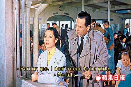 另一場令我難忘的場面是婁麥士訂了房間,被帶上房頂陽台。他真像個巴黎的閣樓畫家,但看到的不是蒙馬特或艾菲爾鐵塔,而是對街的唐樓,在他俯視之下,唐樓上難民住的簡陋茅屋一覽無遺,而且還有小孩子在台上嬉戲。太美了!即使是導演(RichardQuine)的場景調度,也令我感慨萬千,不禁想到小思女士所描述的她的童年世界──她也住在菲林明道的一座唐樓上,幾幢樓連在一起,小孩子可以穿堂跑來跑去。我和小思年齡相彷,當年隨家流亡到台灣新竹,還不是也窮得不像樣子?二十多家人只有一個公共廁所(茅坑),數家合用一間竹子搭的廚房,我們那群野孩子伏在地上打彈子,在路旁小溪中抓泥鰍……大家當年都是難民,而這個歷史上的真實形象反而被荷李活的一部娛樂片保留了下來,能不令我感歎?