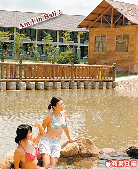 御臨門溫泉度假村距河源1小時半車程,一落腳我們就衝入自己間好有峇里風情的房間,嘩真係好舒服,出浴時身影透過磨砂玻璃而見一剪影,好鬼誘人!這個5星級的溫泉建在河上,溫泉眼水溫有86℃,略帶硫磺味,水質對治療心血管病、皮膚美容和瘦身都有幫助。其實現在開放的只有河中溫泉區,還有田園溫泉區和再大4倍的山地溫泉區未開放,河中區的30多個池有各種溫度和療效,有啲置身河中,像留給情侶的小孤島,又有大得像泳池的滾水池,因為剛貫注新泉水,熱到飛起。有太極式的旋渦水按摩,又有靈芝泉和娘酒泉,溫度在36℃-42℃之間,在晚上可以浸到凌晨1時。因為現時是夏天,又新開業,所以人少更舒服。