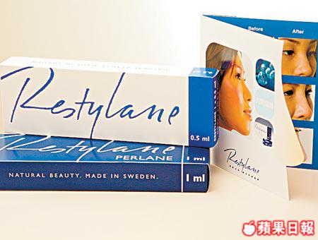 Restylane即透明質酸皮下注射治療,由非動物性呈啫喱狀透明質酸組成嘅天然物質。佢透過增加皮下組織表面容量,將皮膚凹陷部份(即皺紋位)充脹,令皺紋即時撫平。Restylane會適應周圍細胞,喺人體內分解,隨時間和新陳代謝自然地被分解吸收而消失。這種透明質酸已獲美國食品及藥物管理局(FDA)及歐盟(CE)批准使用,誘發過敏情況極少。