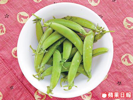 材料:甜豆100克、蝦仁2両、馬蹄8粒、白果10粒、蒜頭1粒、生粉/上湯各少許