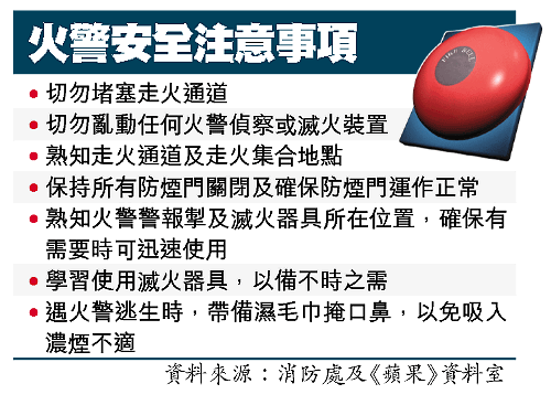 【本報訊】紅磡一幢舊式樓宇,昨疑有人亂擲未熄煙蒂,燃着堆放梯間雜物發生火警。事件揭露了居民防火意識不足,毫不認識火警鐘運作,亦無緊閉防煙門,導致濃煙冒湧,形成煙囪效應,多名住客被困單位內。幸好居民在危急下仍保持鎮定,懂得攜備濕毛巾掩口鼻,或站在窗邊揮手、亮着電筒求救,令救援人員迅速將約100名居民疏散到街外,無人受傷。 記者:伍浦鋒 宋光明 譚健文