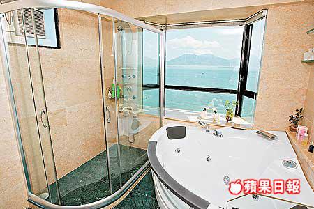 拆牆後,內櫳超巨,客廳有數百方呎,特設弧形闊銀幕落地大窗,擴展視野,享180度無敵海景,俯瞰青山灣至屯門碼頭區,遙望赤鱲角機場,景致廣闊深遠。客廳兩端是房間,亦享相同景色,看得心醉。