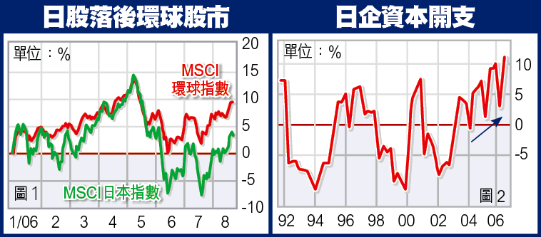 除了受惠於整體大市向好的因素外,日股亦有本身的利好因素。首先,日本企業對前景的信心良好。根據日本央行的景氣報告顯示,日本企業近年的資本投資正處於近15年來的高位(見圖2),反映日本企業對未來的營商環境看法樂觀。此外,日本企業剛公布的季度企業盈利理想,經常性收益平均較去年同期上升13%,亦為巿場帶來正面驚喜。