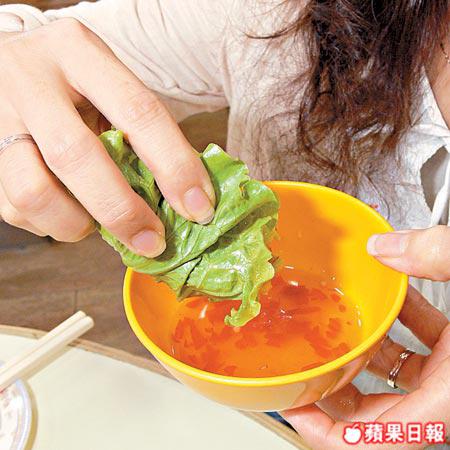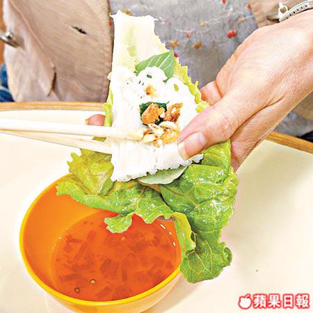 越南天氣一年365日炎熱潮濕,與香港夏天不遑多讓,所以越南人喜歡用生菜包餡料加香草一併吃,就如店中其中一道受歡迎菜式濱海,用生菜包好後蘸魚露伴吃,口感清涼不肥膩。說起魚露,個個越南女生都身材纖瘦,原來魚露居功不少,阿霞說︰「食得魚露多可以減肥㗎,因為魚露成份有醋、青檸同辣椒,可以吸油同燃燒脂肪。」嘩,聽落似有效,難怪個個越南女生穿着薄薄長衫,也不覺她們有何肥肉,那是否甚麼越南菜也該下魚露?阿霞解釋︰「其實只有亁檬同濱海呢類本身無味嘅食物,先要伴魚露食㗎咋。」是嗎?明白了,下次若見到人連生牛肉湯河與炒飯也照下魚露,我一定會加以指正!記者︰方綺君