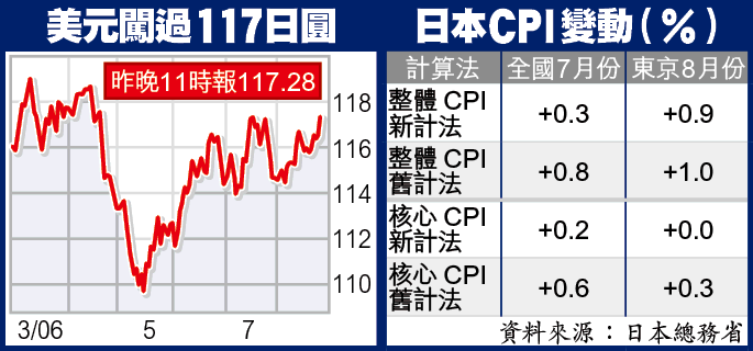 昨晚11時,美元報117.28日圓,升0.74日圓;歐元兌日圓報149.51,升0.77日圓;歐元兌美元報1.2748,升0.16美仙。