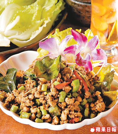 可配雞或牛肉,香口豬肉碎用香料炒過,熱辣辣包生菜吃,是香港人最喜愛的吃法,不過泰國人就喜歡用肉碎送飯。