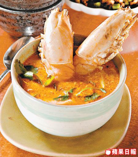 大頭蝦煮冬蔭功,辣度未及真正泰國冬蔭功一半,不過仍然攻鼻,加椰奶只為配合港人口味,多一份椰香更滑溜。