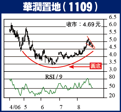 早前抐推介之華潤置地(1109)受制於5.20元回落,昨天靠近20日線現支持,平收4.69元,現「倒轉錘」,成交4天來首度回升,下周初可上試位處4.83元的10日線,破位可回復強勢,反覆推向5.20元高位,其他國內地產股亦見蠢動。