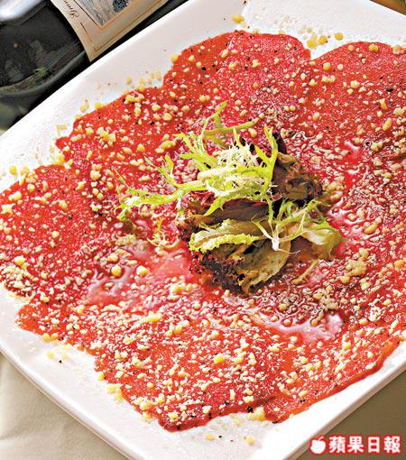 選用新西蘭牛柳,因為較少脂肪,唔似美國牛多脂肪,影響口感。牛肉撒上芝士粉、黑椒及欖油等,入口十分滑嫩香口,連向來怕食生肉嘅我都食唔停口。