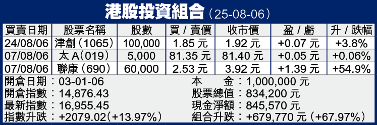 倉內股票的部署亦和上周六所講無變,但津創(1065)若升近2元附近有大沽壓,可考慮先食糊,候底再補回。