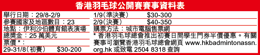 男單主力林丹並未出征韓國公開賽,他表示今次賽事主要以提升狀態為主:「目前的狀態還可以,希望透過賽事鍛煉;我覺得香港的裁判執法比較公正。」總教練李永波則認為本港裁判水準有所提高。