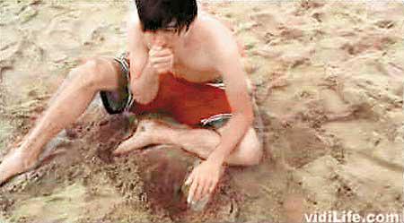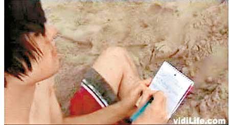 怵目驚心,短片一開始,其中一名流落荒島的年輕人,只穿了短褲,趴在沙灘上。他後來一邊用「防水筆記本」寫日記,一邊自述流落荒島的駭人經歷:他的一個朋友Jamal餓得發慌,竟然食自己;他吃了另一個朋友Robbie;後來更飢不擇食至吃自己的糞便。Oh,myGod!連糞便都食,他生存無望,悲極來一個大字形攤開等死……