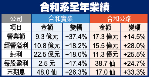 合和實業多賺18%