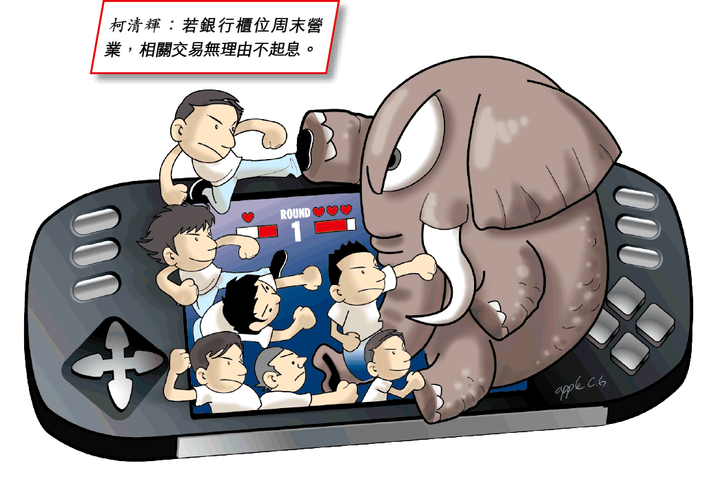 恒生銀行(011)副董事長兼行政總裁柯清輝認為,若銀行櫃位周末營業,相關交易無理由不起息。他指出,若銀行不在周末設櫃位,僅限於提供財富管理及辦理信用卡申請等,服務過於狹窄。
