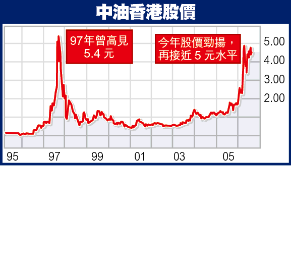 Karen:好!今日我介紹你買嘅,就係可以去「賭」中國影響外國嘅能力,能力愈強,呢隻股票就會升得愈勁。就係135中油香港,呢間公司其實都算係中國石油母公司嘅棄嬰。93年中國由石油出口國變成入口國,咁同年,中油香港借殼上市,我諗係為中國石油部製造可以向外收購資產,或者公司化嘅出路。不過,頭幾年,中油香港乜都冇做,直到96年,佢得到第一份中國石油部嘅生產合約,又撞正紅籌當炒「國家注入資產,明益香港人」概念,市場有人開始吹風話,中央會成個中國石油部注入中油香港。