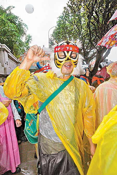 倒扁總部昨因天雨關係取消下午遊行,但群眾一腔怒火無從宣洩,自發圍繞景福門遊行,有人穿上黃色的雨衣,有人撐起紅綠色雨傘,高舉「人民力量」的自製橫額,不斷做出拇指向下的倒扁手勢,不斷高喊「阿扁下台!阿扁下台!」,前日叫人動容的紅色怒潮,此刻變成七色漩渦,誓要把陳水扁拉下台。