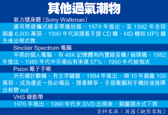 iPod熱潮退卻,還反映在銷量上。iPod五年前推出以來,銷量一直上升,市場佔有率達75%,去年聖誕達到高峯,一季賣出1,400萬部,但最近兩季已分別下跌至850萬和810萬部。科技品牌專家阿霍寧大膽斷言:「iPod正在我們眼前凋零。」