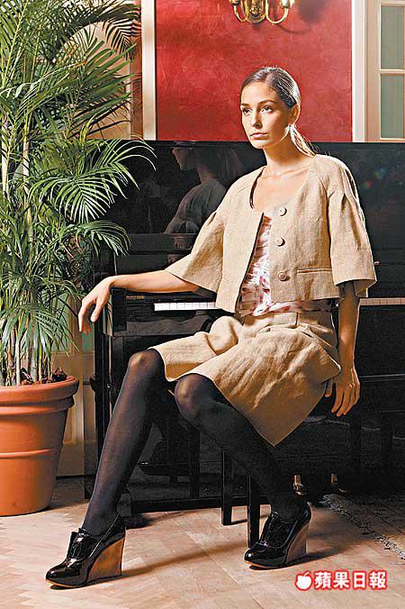 除此之外,layering是整個系列的重心,一襲one-piece裙配ruffles短袖恤衫的配搭表露無遺,新裝更以不同物料互相配合,形成對比效果,配襯的圓頭四吋高woodwedges,設計參照男裝鞋,在中性的設計中還有回歸校園的感覺。色調以卡其色、燕麥色和灰色等為主,配以淺粉紅、天藍和檸檬黃等清新色彩點綴。