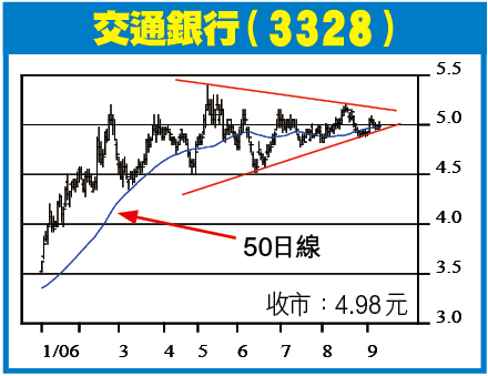 交行過去兩個月時間在4.8元水平打了很穩健的底部,股價在下調空間不大,昨日股價更在逆市靠穩,如股價回吐至4.9水平,可積極吸納。