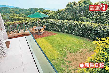 漣山地下複式連花園單位,只設於TheCrescent,數量僅10個,花園約650至1400方呎。介紹的花園650方呎,雖較其他單位小,但經過悉心布局,廣種青草及矮樹植物,饒富綠意生氣;另闢地鋪砌戶外地板及擺放戶外餐桌,營造出悠閒居停。