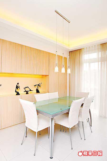 單位內櫳分區清晰,下層為客飯廳及廚房;另工人房向客廁偷位,增建為工人套房。上層保留原圖則的3房,僅闢出部份空間予走廊建飾櫃,增添美感。