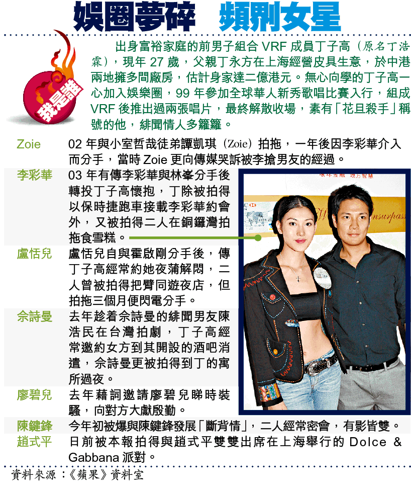 問丁子高是否趁GiGi丈夫失蹤乘機獻殷勤?他即說:「絕對唔會,同佢冇任何機會。」他又否認與近日傳緋聞的趙世光幼女趙式平拍拖,至於GiGi則至截稿前仍未有回覆。