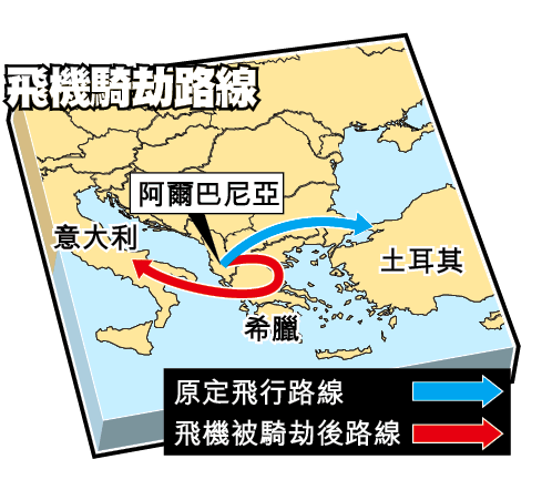 土耳其NTV電視台報道,被騎劫的是波音737客機,原定由阿爾巴尼亞首都地拉那(Tirana)飛往土耳其最大城市伊斯坦堡(Istanbul),於香港時間昨晚10時58分飛入希臘領空,卻遭兩名土耳其人騎劫。客機載有107名乘客和6名機員。