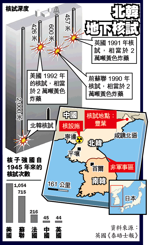 美國間諜衞星拍到北韓在豐葉地下核設施附近,已搭好大型觀禮台,印證情報員估計北韓最快今天(周日)核試的講法。聯合國安理會前天一致通過聲明要求北韓取消核試後,日本大使警告,北韓一旦核試,可能面對軍事行動。