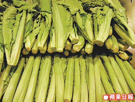 材料:菜心/翠玉瓜/芥菜膽各3両、上湯1杯、生粉/水各適量