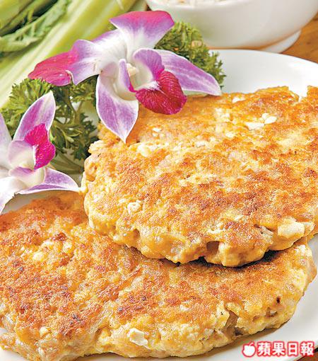 做法:鹹蛋黃蒸20分鐘待變軟後剁碎待用。分別剁碎豬肉及豆腐,將豆腐、豬肉及蛋黃混合,加入生粉、雞蛋攪勻,最後加鹽調味後搓成一個薄圓餅狀,以中火煎熟即成。