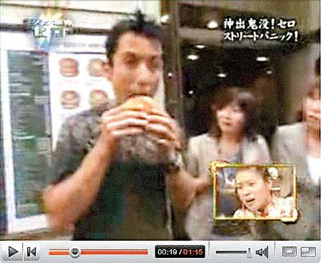 Zero最後再從海報「拿出」另一款漢堡包,揚長而去,留下一班目瞪口呆的圍觀途人。網址 http://youtube.com/watch?v=ek2b__SUg9IYouTube網站