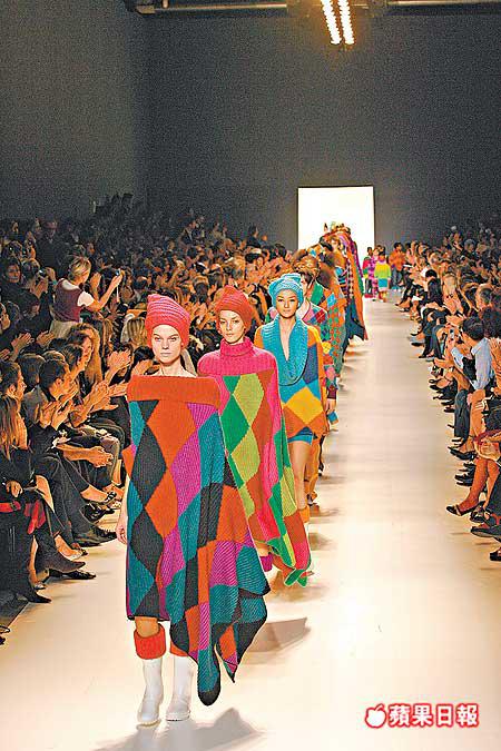 當中以品牌最signature的針織為主,以誇張的形態表現喜悅氣氛,不乏一些潮流元素如漆皮pumps、船踭高跟鞋、菱形圖案poncho、斗篷和chunkyscarf,又有色彩繽紛的bomberjacket,緊貼潮流步伐。
