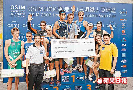 昨日在大埔大尾篤舉行的「OSIM香港ITU三項鐵人亞洲盃」,由於總獎金高達19萬5千港元,兼且成績將計入北京奧運積分內,故破天荒吸引了近1,000名選手參賽。雖然高手林立,但李致和在男子精英公開組中表現不俗,除在較弱的1.5公里游泳一項落後,以第6名上岸外;在40公里單車及10公里跑步上,都為他扳回不少失地,在離終點約500米更跑至領先位置。