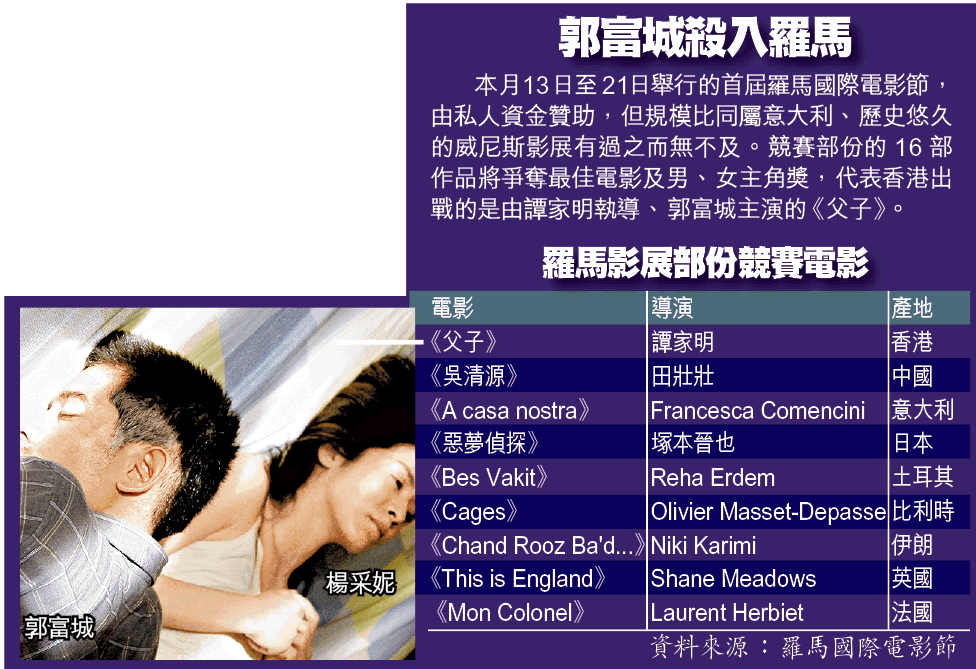 雖然羅馬國際電影節是首次舉行,但吸引了不少猛片參展及明星出席,美國男星李察基爾(RichardGere)昨日就抵達當地為電影《TheHoax》造勢。
