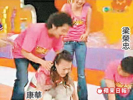 繼黃宗澤在日前《遊戲天王》中涉嫌抽陳法拉水後,梁榮忠又被指在該節目中狂昅陳法拉和康華走光,有網友更把當日忠仔昅女過程短片放上網,並配上字幕及箭嘴以證忠仔當真去到邊跟到邊,不過被昅的當事人之一康華卻仍力撐忠仔說:「佢幫我哋打氣啫!」