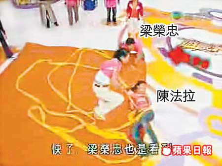 梁榮忠因為與朱慧敏發生「車震」事件後被封賤男,與女友鍾麗淇感情危危乎,豈料一波未平,一波又起,好色男忠仔上周又在《遊戲天王》中涉嫌狂昅陳法拉和康華走光。凌零發昨日在網站YouTube中,看到網友shev以「shevVS陳法拉」作標題上載了一段《遊戲天王》短片,原來是上周二晚《遊戲天王》的節目片段。