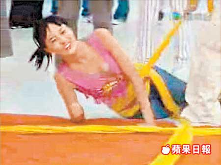 在短片中,陳法拉和康華分別玩遊戲,剛巧梁榮忠兩次也站在她們身旁打氣,只見不論陳法拉和康華去到哪裏,梁榮忠也緊貼旁邊,是以網友特在畫面加上箭嘴指着他,示意他存心黐到實狂昅走光女藝人。