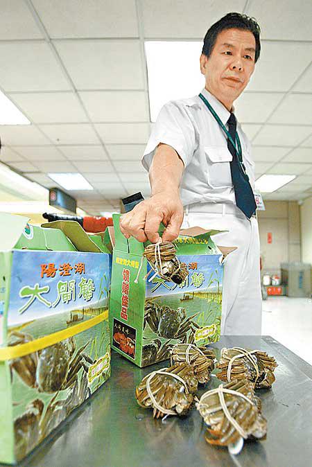 另一邊廂,台灣當局由今年9月起至今,抽驗到629公斤來自陽澄湖的大閘蟹含禁用的抗生素硝基呋喃後,到昨日又在2,647公斤的進口大閘蟹及其他類的活蟹中,同樣檢出含有硝基呋喃。台囗生署昨日宣布禁止旅客攜帶大閘蟹入境,而每批進口大閘蟹均需附檢驗報告,才可入口。